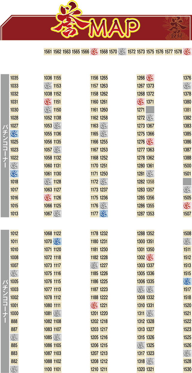 この日の最高差枚記録となった1375番台を筆頭に、4台の誉マークが飛び出した。3,000枚超えを果たした1365番台もなかなかの良挙動だったが、やはり1375番台の勢いには歯が立たなかったようだ。