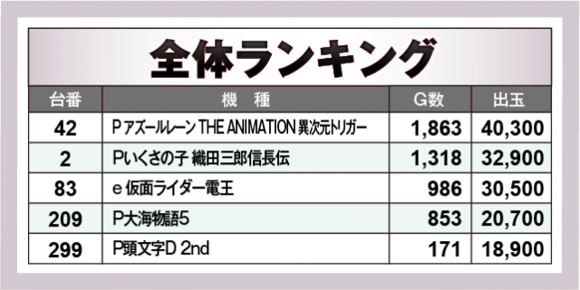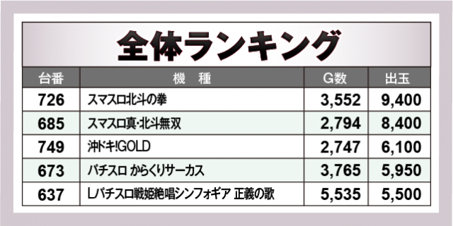 ※出玉数順に掲載しています