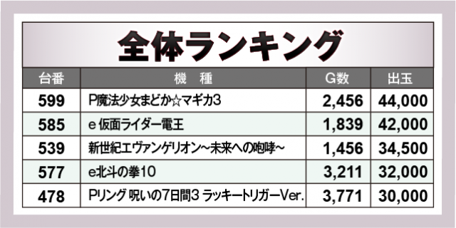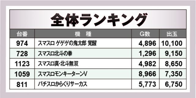 ※出玉数順に掲載しています