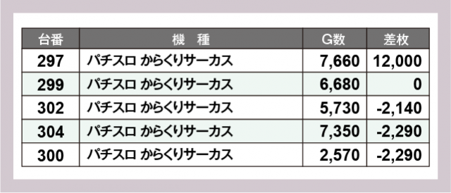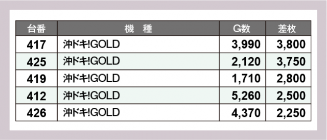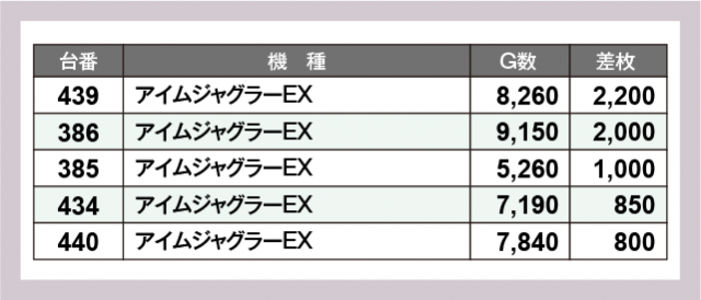 ※差枚数順に掲載しています