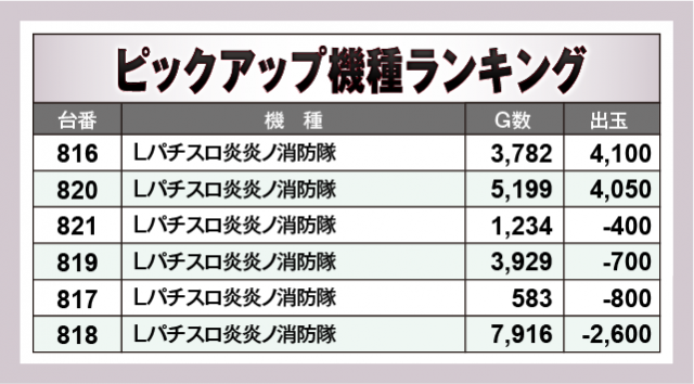 ※出玉数順に掲載しています