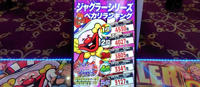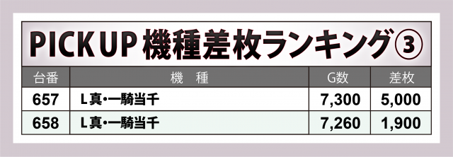 まずは上位30台の成績から。30台の全てが+2,000枚以上となった上に、+3,000枚以上は全体の半数となる15台、+4,000枚以上は13台、+5,000枚オーバーは7台、+6,000枚オーバーは5台、+7,000枚オーバーは4台、+8,000枚オーバーは3台、+9,000枚オーバーは2台、そして万枚をクリアをしたのは1台と、順調なスタートダッシュを切った。