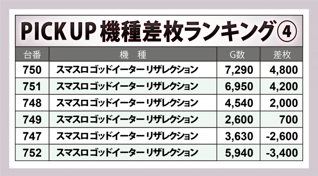 その他、『L 真・一騎当千』には+5,000枚超、『スマスロ ゴッドイーター リザレクション』には+4,000枚超×2と、勝るとも劣らない台が度重なった。