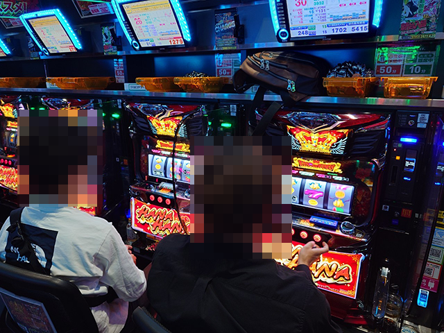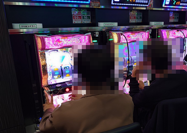 どちらの台でも、1箱以上の持ち玉を使い、うれしそうに遊技をおこなっていた。