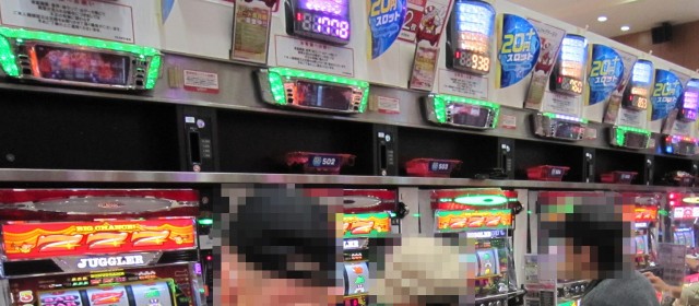 25パイマシンも負けていない。『パチスロ甲鉄城のカバネリ』『マイジャグラーⅤ』『ゴーゴージャグラー3』『ハッピージャグラーVⅢ』『アイムジャグラーEX』と、頭上にはメダルの詰まった箱が方々でカウントされた。
