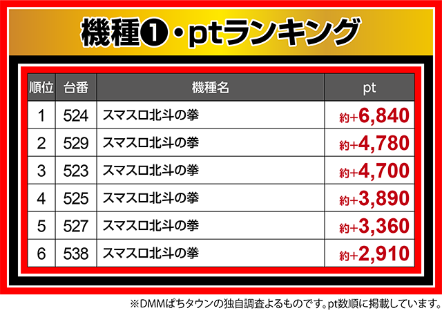 『スマスロ北斗の拳』は、6台が約+2,900ptオーバー!!