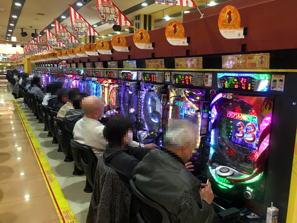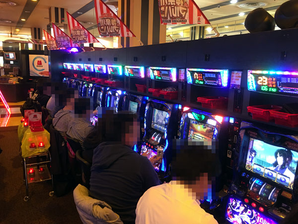 低貸しコーナーを見てみると、1円パチンコ・5円パチスロ共に空台を見つけるのが大変なほど、多くのプレイヤーでにぎわっていた。