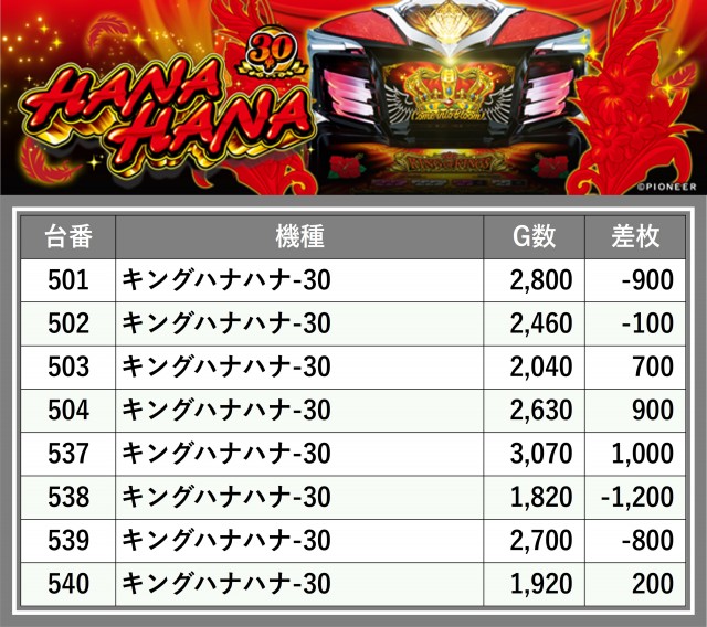 ※台番順に掲載しています