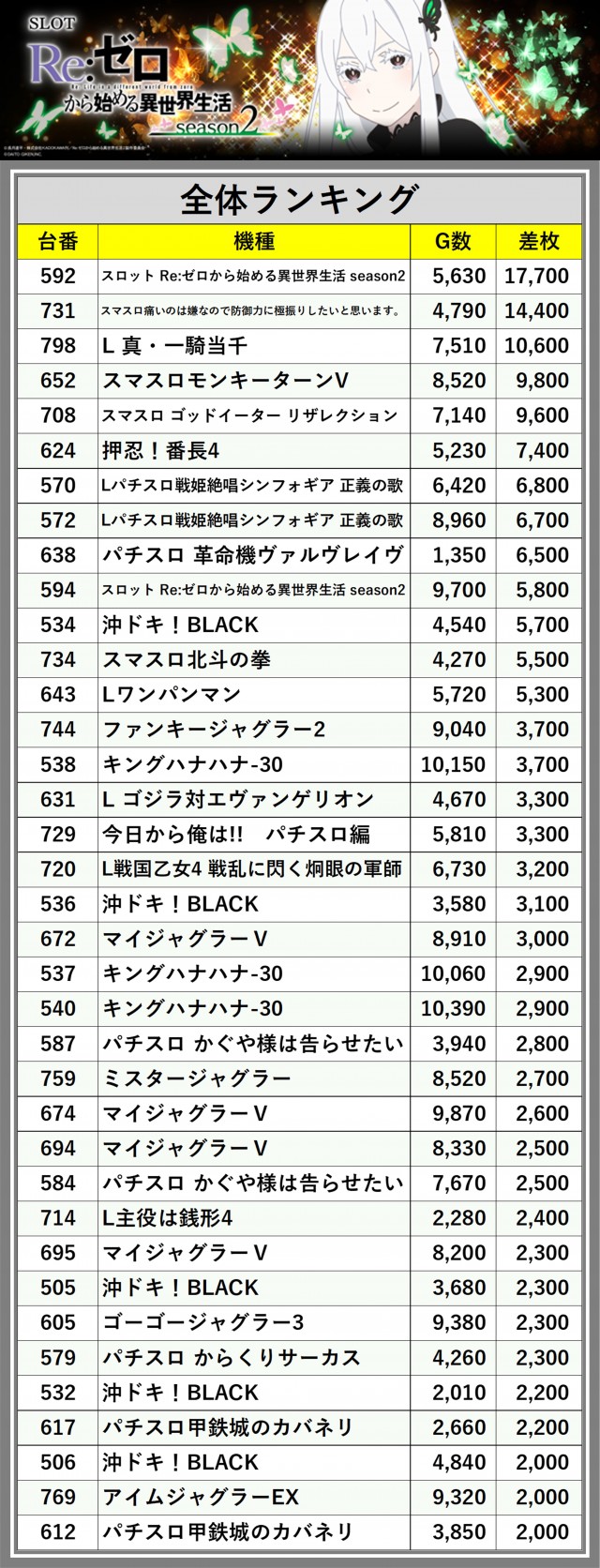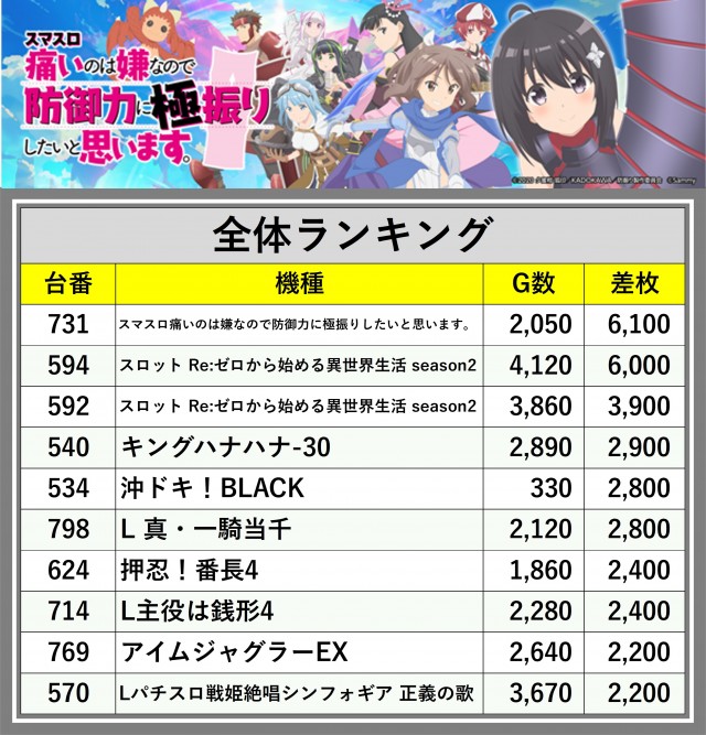 ※差枚数順に掲載しています