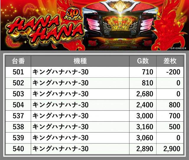 ※台番順に掲載しています