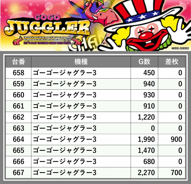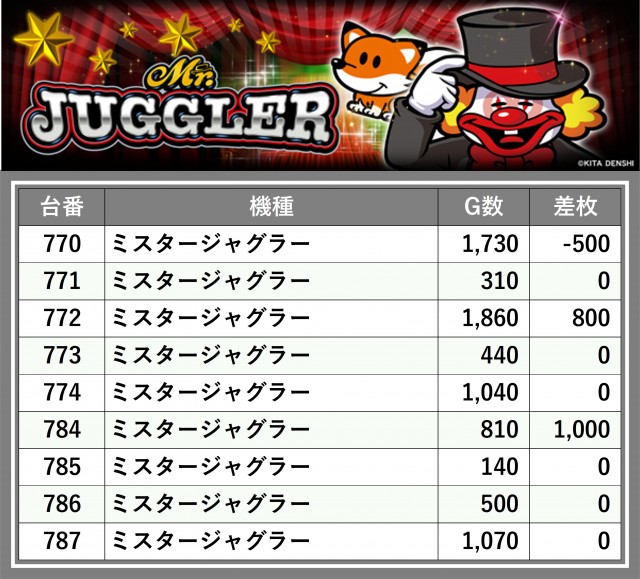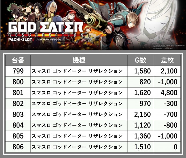 厳選された取材対象機種をはじめ、その他スロット全体から好記録が飛び出した!プレイヤーが楽しんだ1日を下記データにて振り返ってみて欲しい。