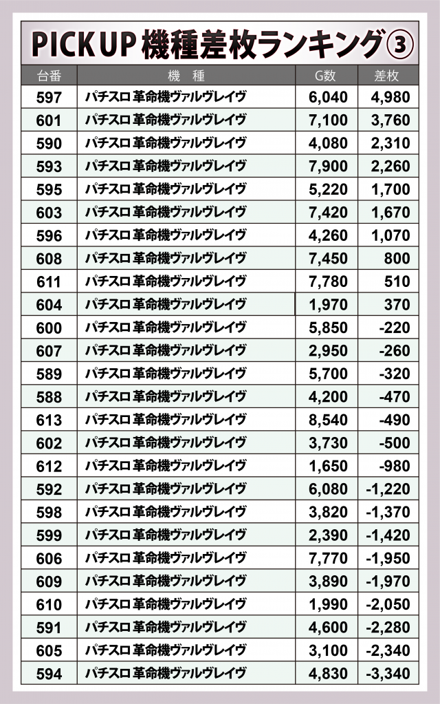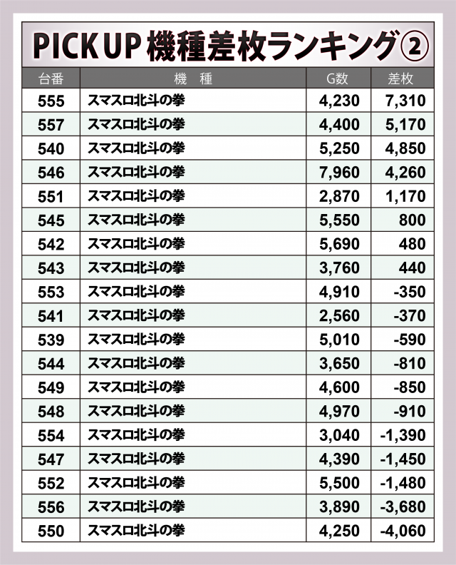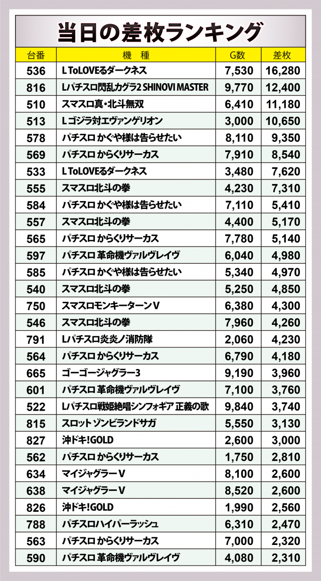 ※差枚数順に掲載しています。