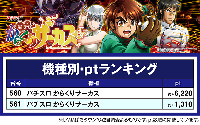 パチスロをみると、「パチスロ からくりサーカス」で活躍をするプレイヤーが目立っていた。
