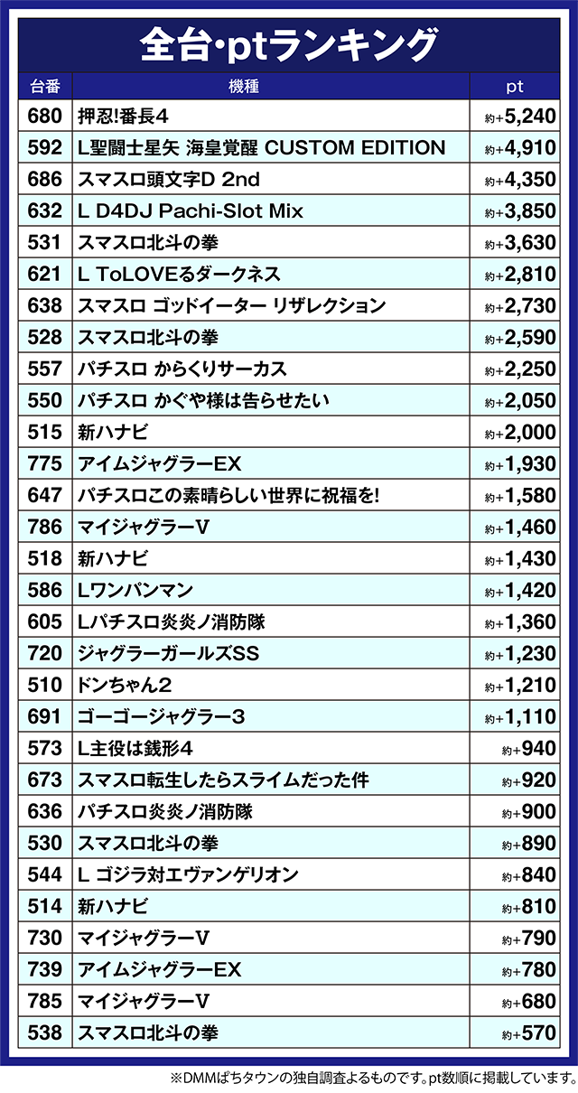 「押忍!番長4」の680番台が約+5,200ptオーバー!