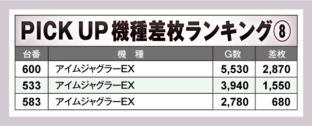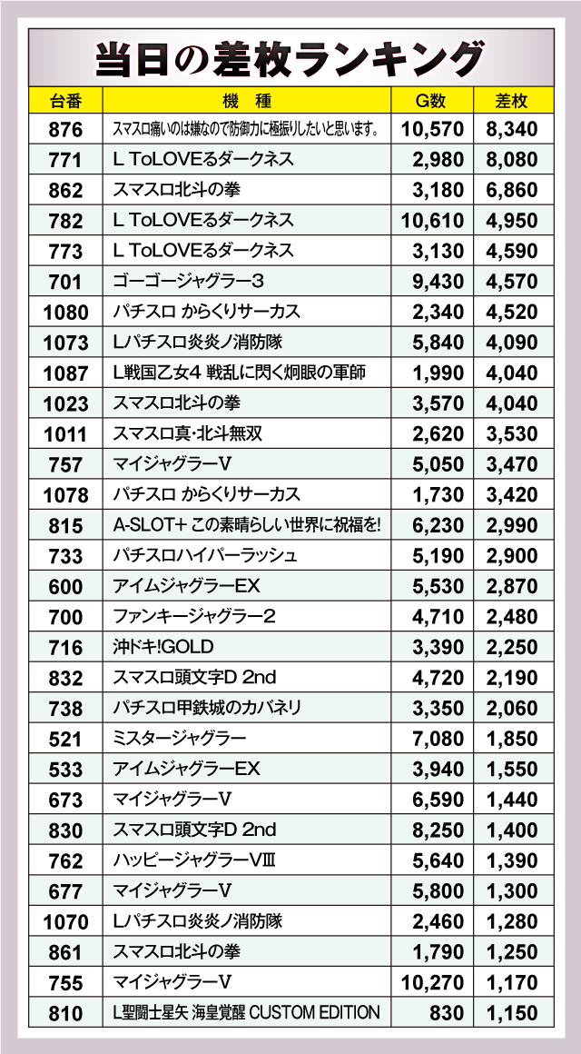 ※差枚数順に掲載しています。