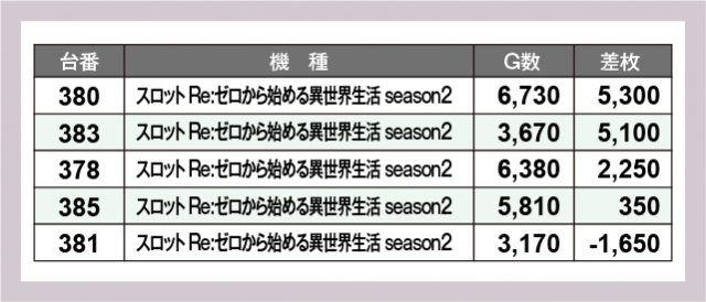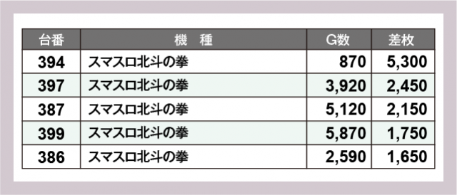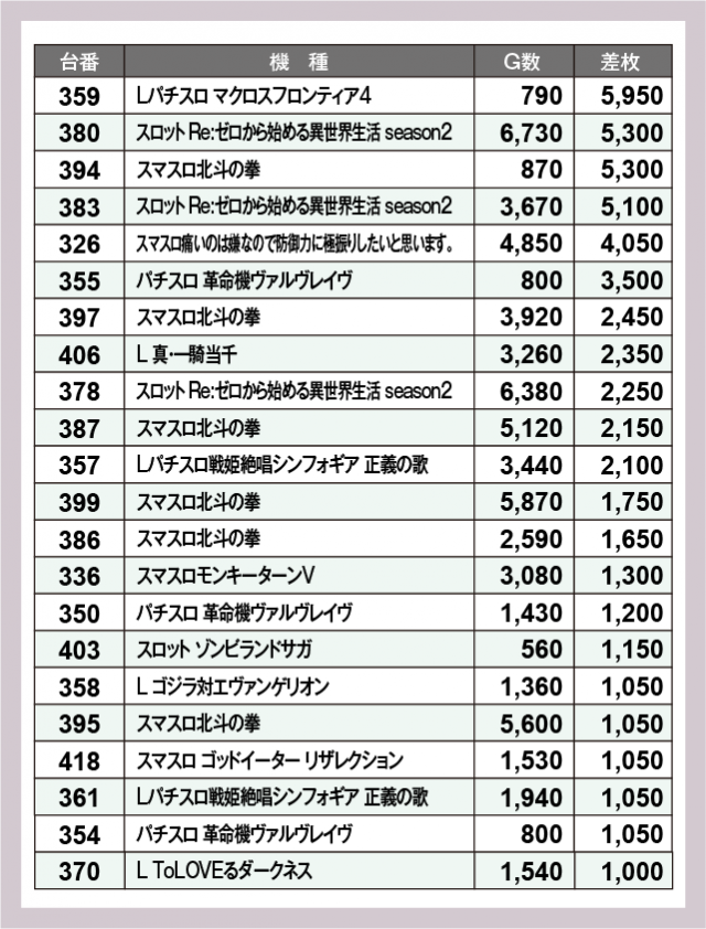 ※差枚数順に掲載しています