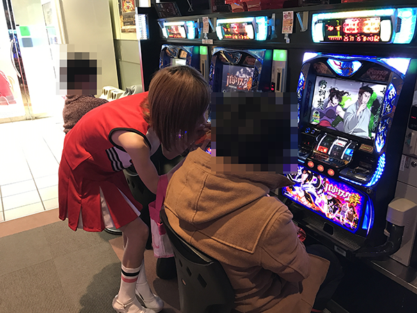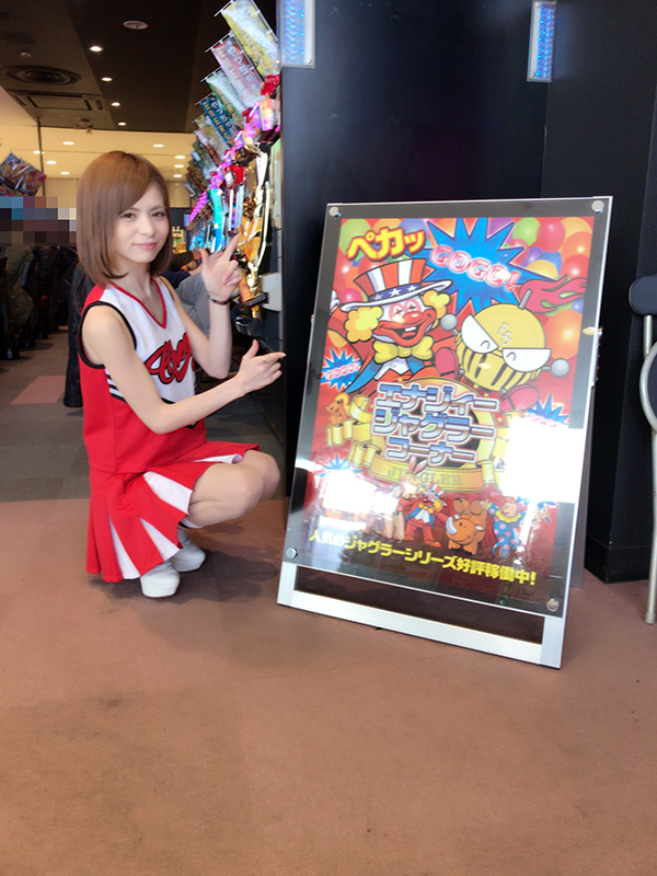 パチスロコーナーでは、あやちゃんの実戦している「ジャグラーシリーズ」が盛況! 「パチスロ化物語」や「キャッツ・アイ~コレクション奪還作戦~」には、華麗なパフォーマンスを披露するお客さまの姿も~♪