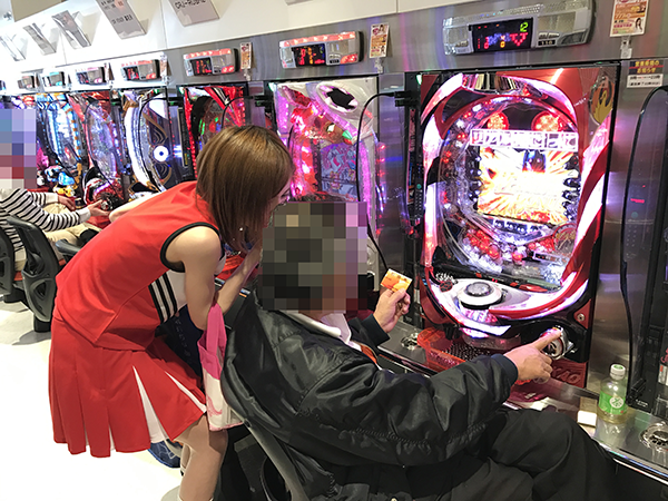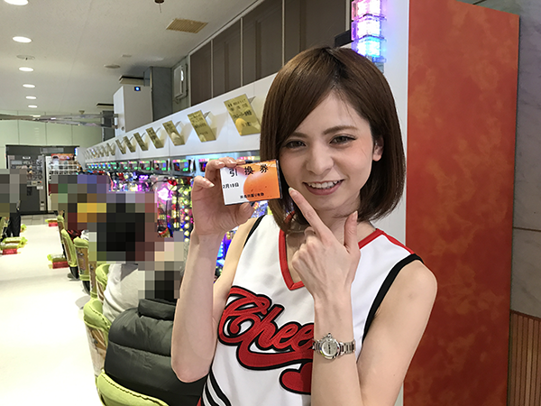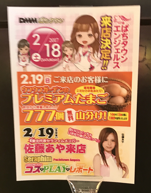 遊技中のお客さまに「ウフウフガーデンのプレミアムたまご」引換券を手渡すお手伝いもしましたよ❤