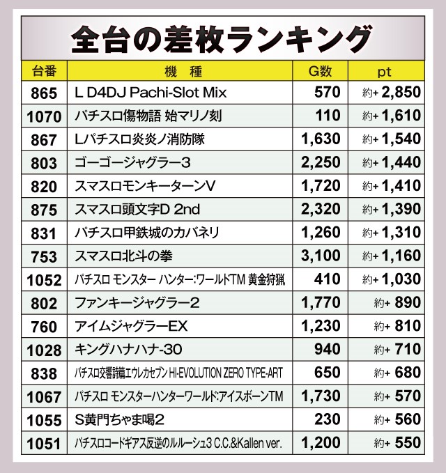 ほかにも『パチスロ傷物語 始マリノ刻』や『Lパチスロ炎炎ノ消防隊』、『ゴーゴージャグラー3』など、あらゆる機種が4桁pt超を獲得した。