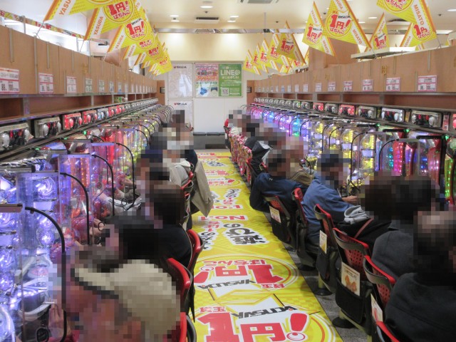 1円パチンコでも海物語シリーズが大好評。空き台が見当たらないほどの稼働となっており、プレイヤーたちの笑顔につつまれていたことも印象に残っている。