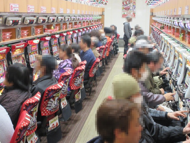 取材日も多くのプレイヤーが来店しており、パチンコ・パチスロの各シマがにぎわいをみせていた。