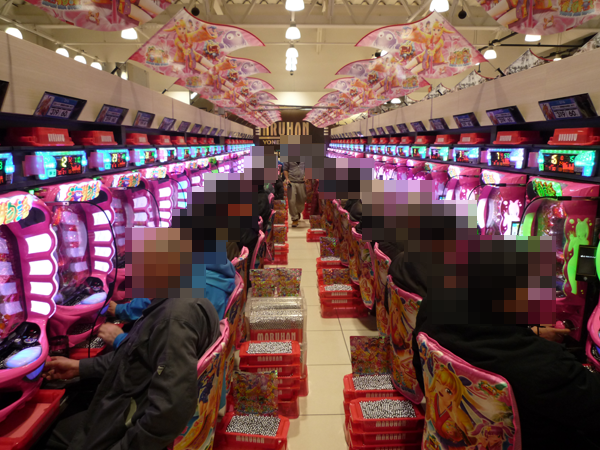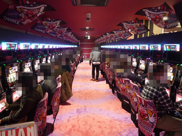 スクープの焦点をあてるべきポイントは数えきれない。たくさんのシマに、活気のある光景が広がっていた。「マルハン米沢店」の一面はパチスロコーナーで決まりだろう。