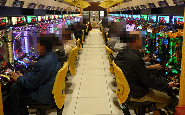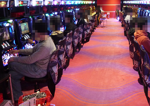 15時をまわった頃のパチスロでは、「バジリスク~甲賀忍法帖~絆」と「ミリオンゴッド-神々の凱旋-」が盛況。遊技を楽しむプレイヤーの姿からは、充実感を得られていることもうかがえた。