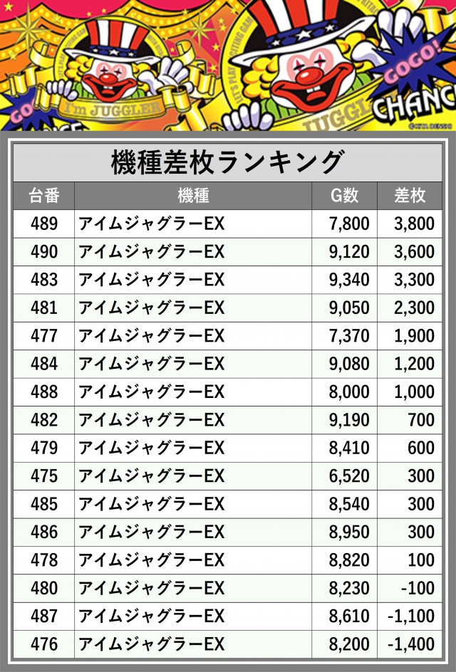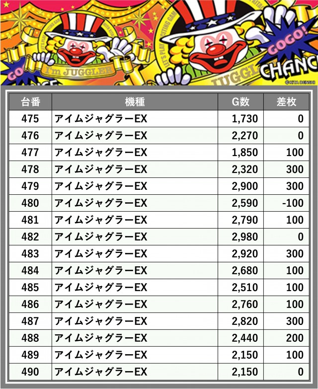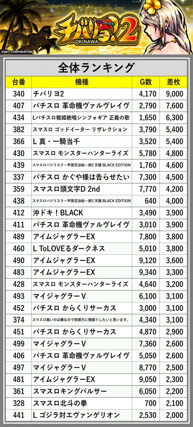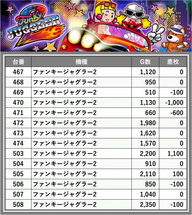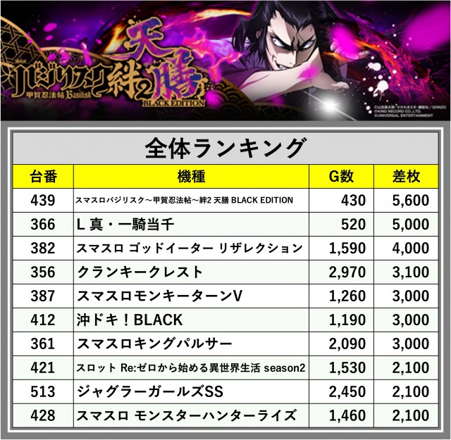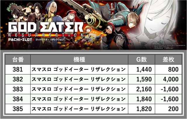 厳選された取材対象機種をはじめ、その他スロット全体から好記録が飛び出した!プレイヤーが楽しんだ1日を下記データにて振り返ってみて欲しい。