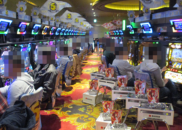 20円パチスロの「バジリスク~甲賀忍法帖~絆」や「沖ドキ!-30」、5円パチスロなど、さまざまな場所が朝からにぎわっていた。