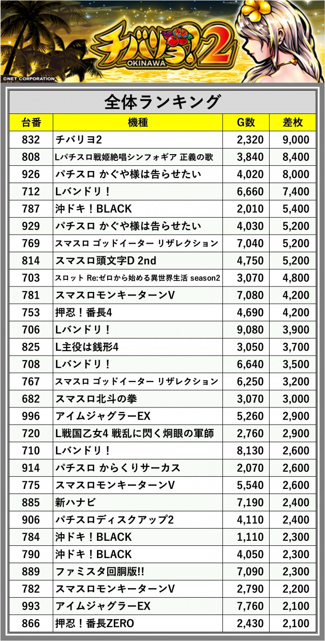 厳選された取材対象機種をはじめ、その他スロット全体から好記録が飛び出した!プレイヤーが楽しんだ1日を下記データにて振り返ってみて欲しい。