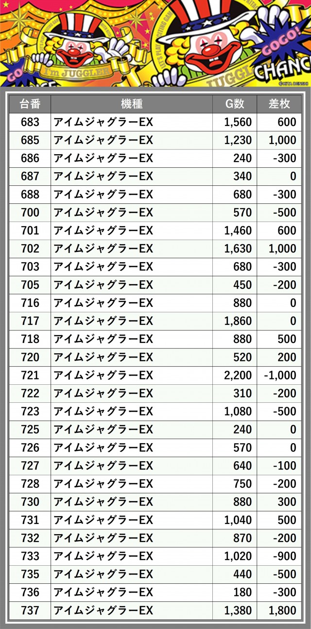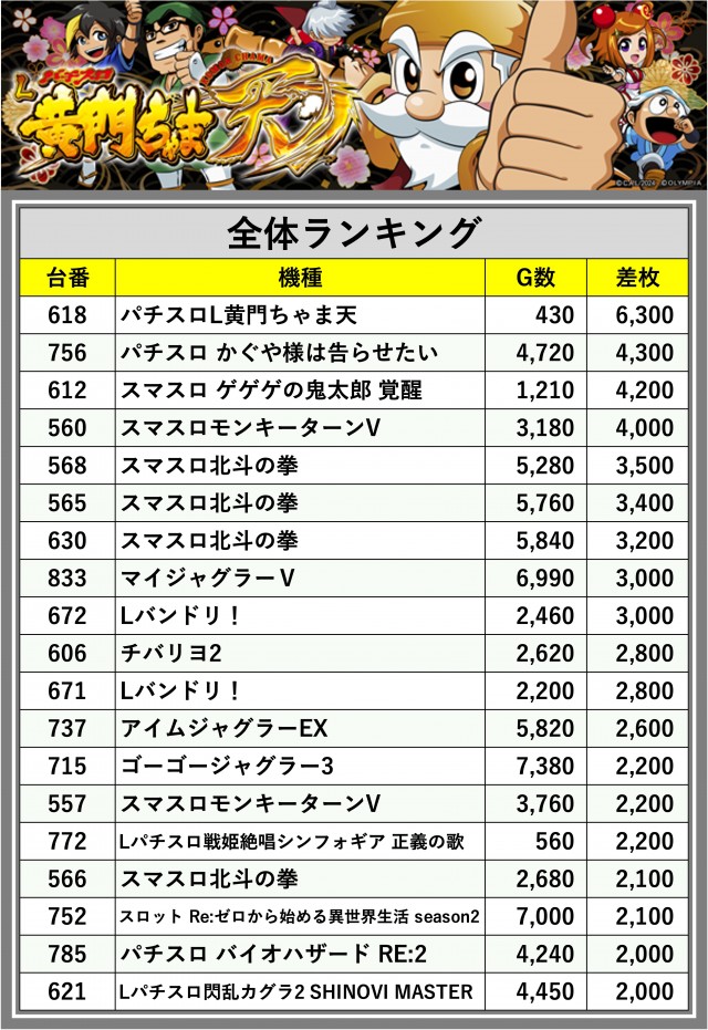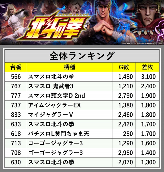 厳選された取材対象機種をはじめ、その他スロット全体から好記録が飛び出した!プレイヤーが楽しんだ1日を下記データにて振り返ってみて欲しい。