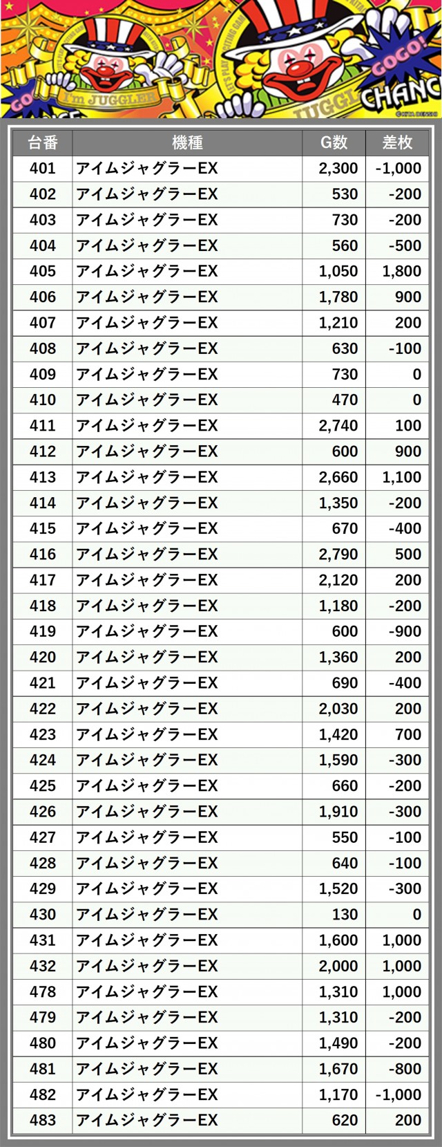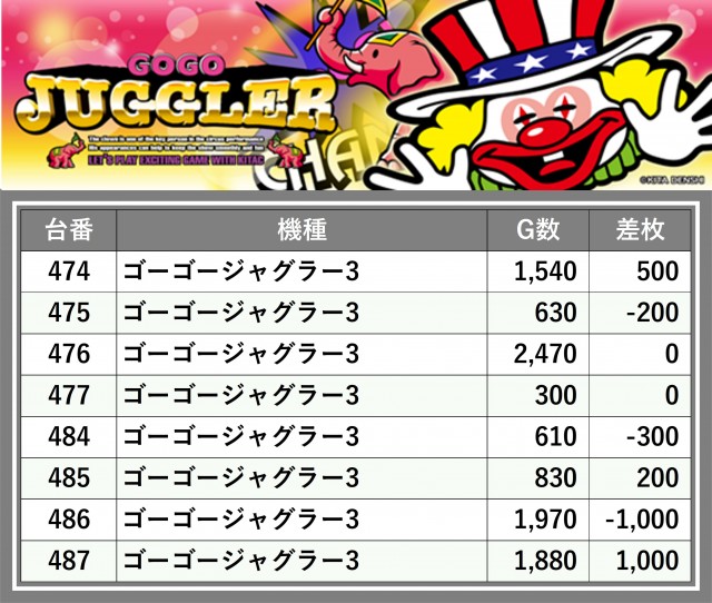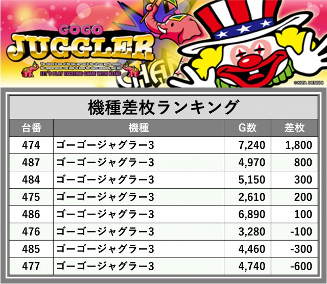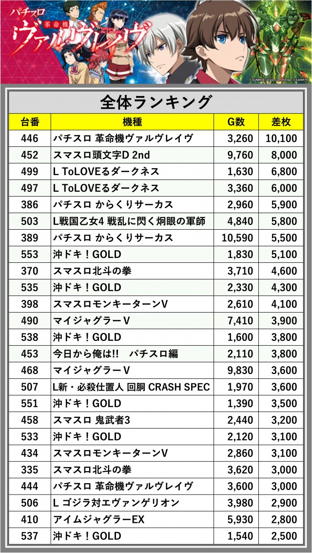 厳選された取材対象機種をはじめ、その他スロット全体から好記録が飛び出した!プレイヤーが楽しんだ1日を下記データにて振り返ってみて欲しい。