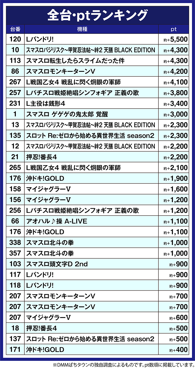 ※なお、本記事中のデータは全てDMMぱちタウンの独自調査によるものです