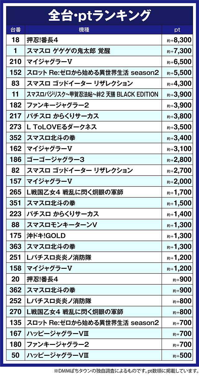 ※なお、本記事中のデータは全てDMMぱちタウンの独自調査によるものです