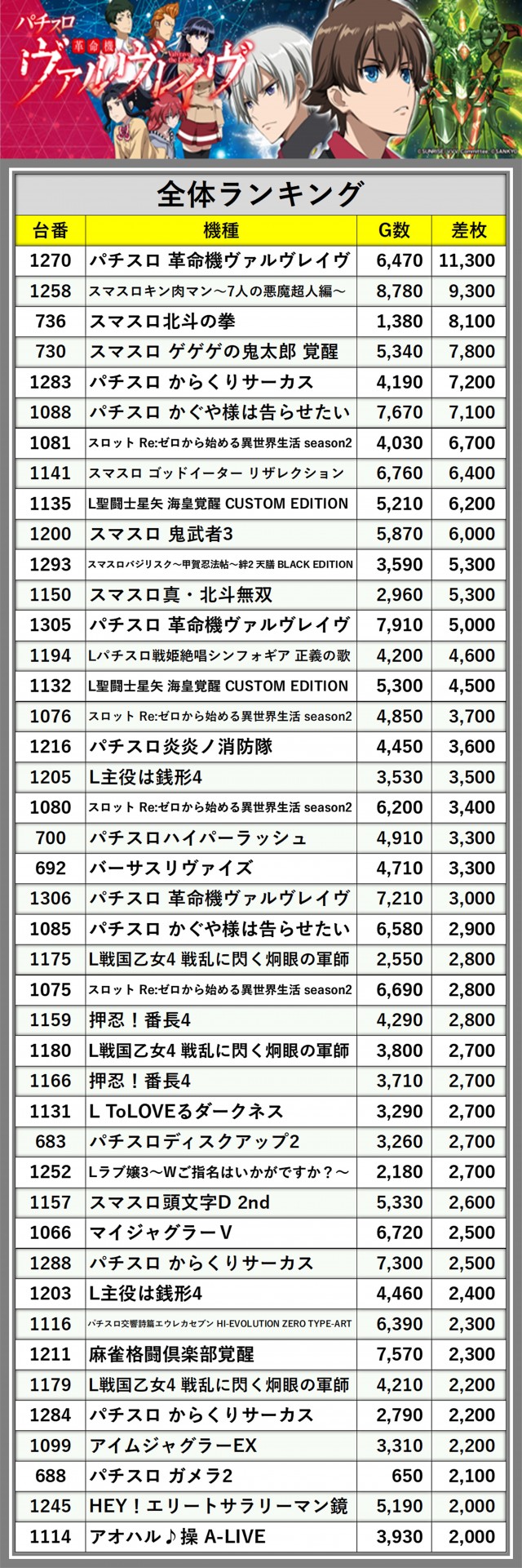 厳選された取材対象機種をはじめ、その他スロット全体から好記録が飛び出した!プレイヤーが楽しんだ1日を下記データにて振り返ってみて欲しい。