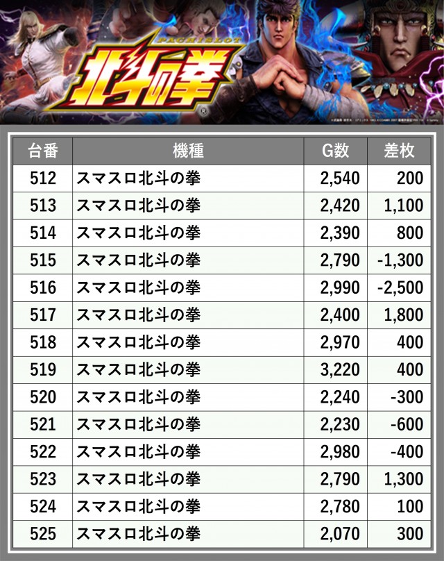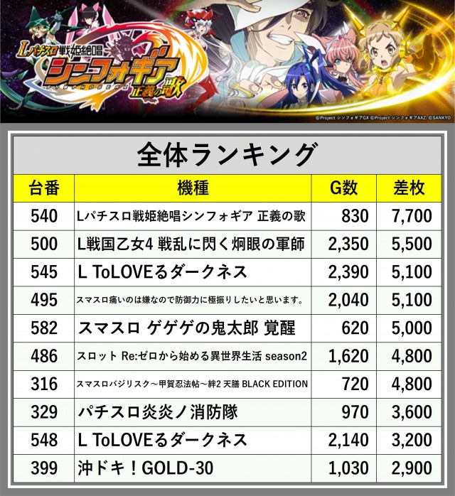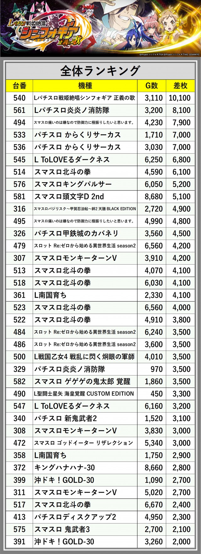 厳選された取材対象機種をはじめ、その他スロット全体から好記録が飛び出した!プレイヤーが楽しんだ1日を下記データにて振り返ってみて欲しい。