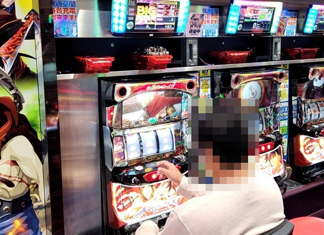 「パチスロ甲鉄城のカバネリ」と「パチスロ炎炎ノ消防隊」にも、うれしそうに遊技をおこなっている姿があった。