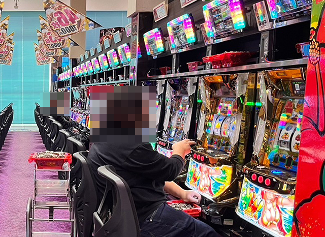 「マイジャグラーⅤ」にて、2箱以上の持ち玉を使って遊技をおこなっているプレイヤーを目撃。