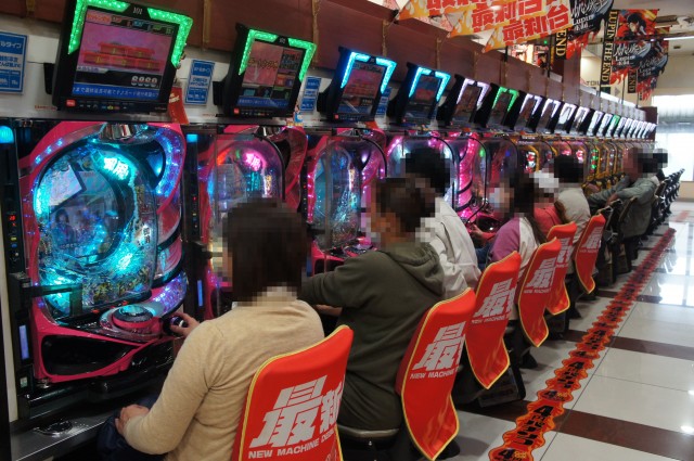 1円パチンコも活況。なかでも「CRAスーパー海物語 IN JAPAN with 桃太郎電鉄」がつねに満席となるほどに人気があり、いたるところでプレイヤーの活躍がみられた。