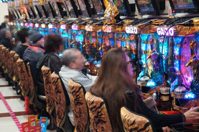 1000円/47枚パチスロでひときわ目立っていた機種が「SLOT魔法少女まどか☆マギカ」。微笑ましい光景が広がっており、プレイヤーたちの笑顔からも心から遊技を楽しめていることがうかがえた。