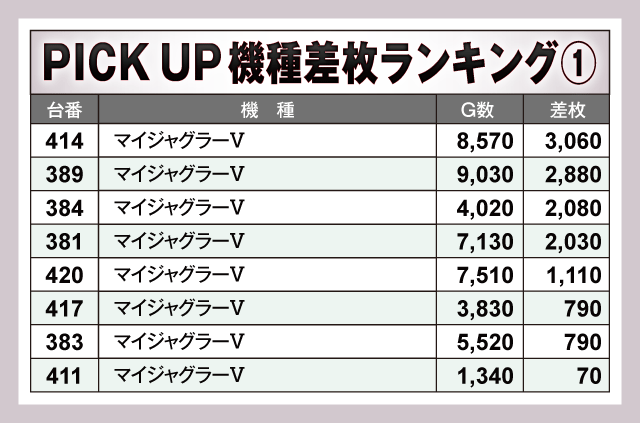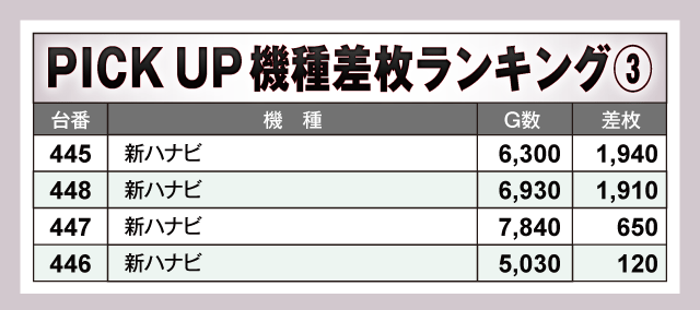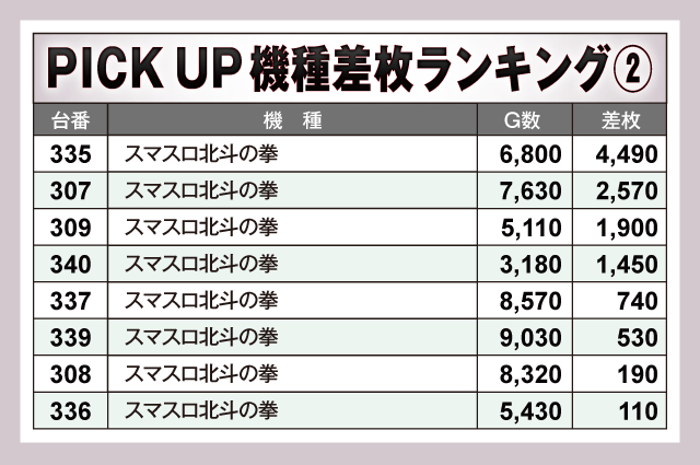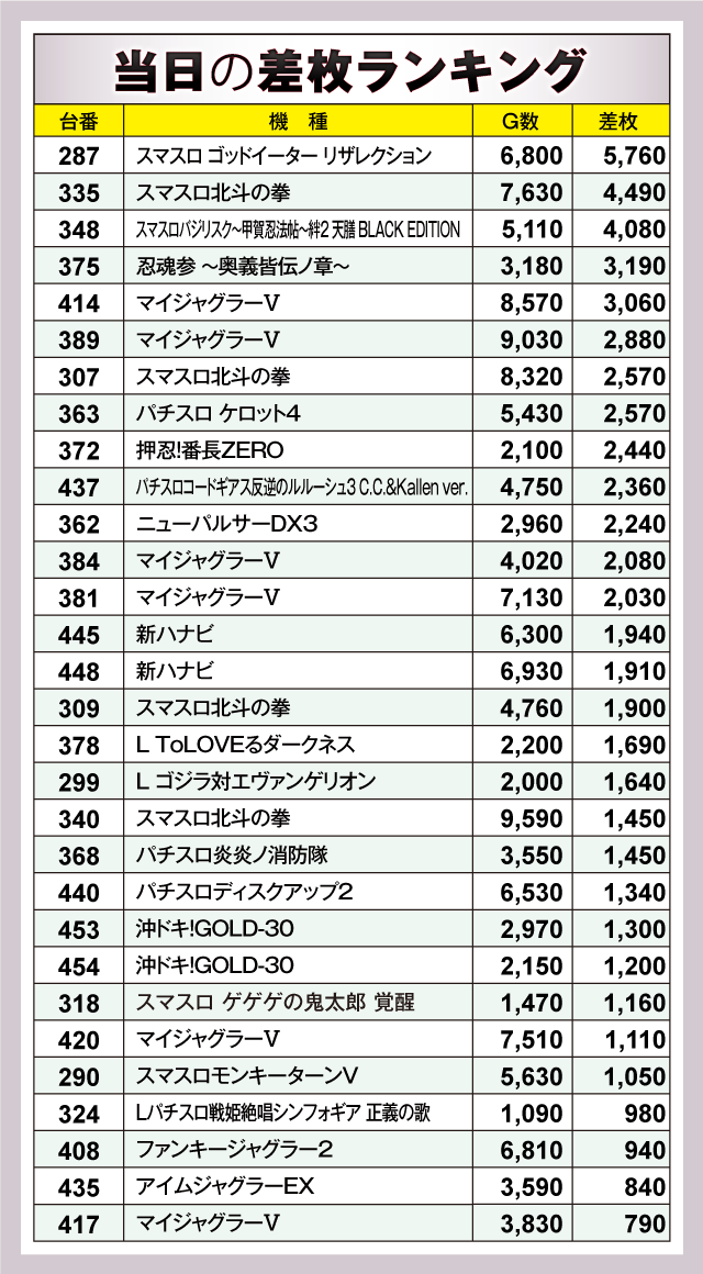 ※差枚数順に掲載しています。