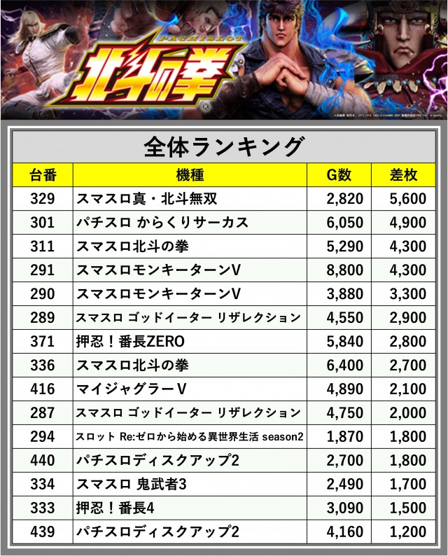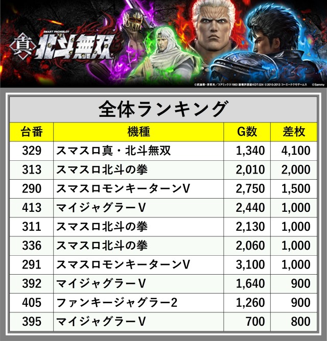 厳選された取材対象機種をはじめ、その他スロット全体から好記録が飛び出した!プレイヤーが楽しんだ1日を下記データにて振り返ってみて欲しい。