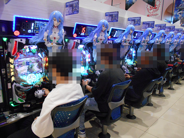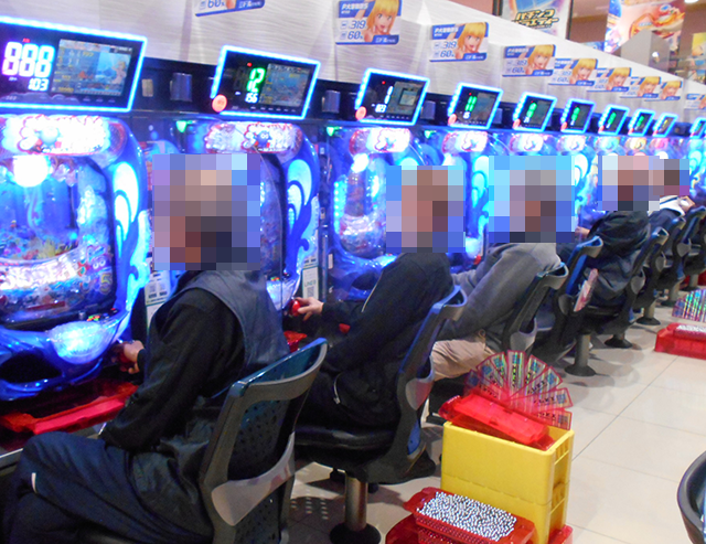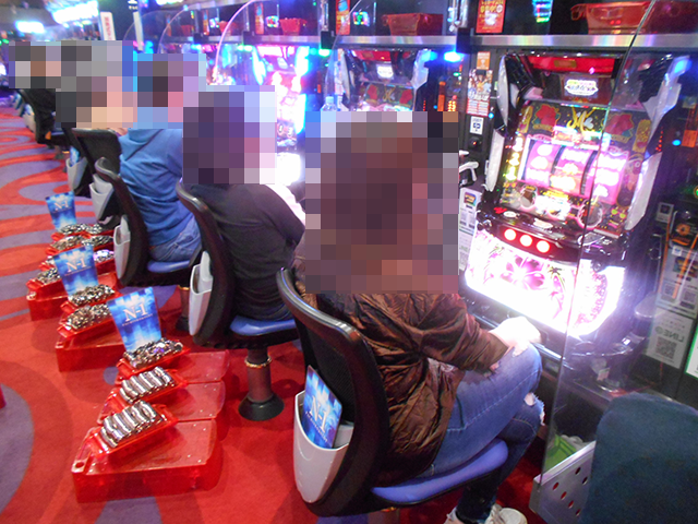 「P大海物語5」には、大箱2箱以上の持ち玉を使って遊技を楽しむ姿があった。