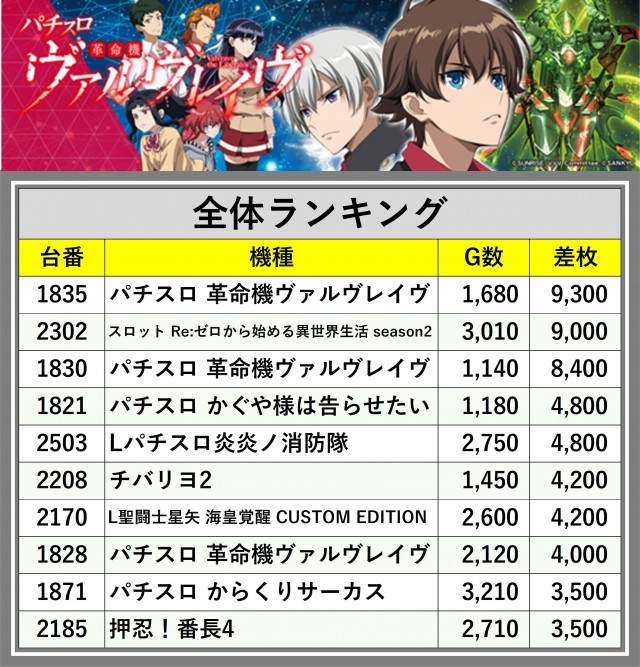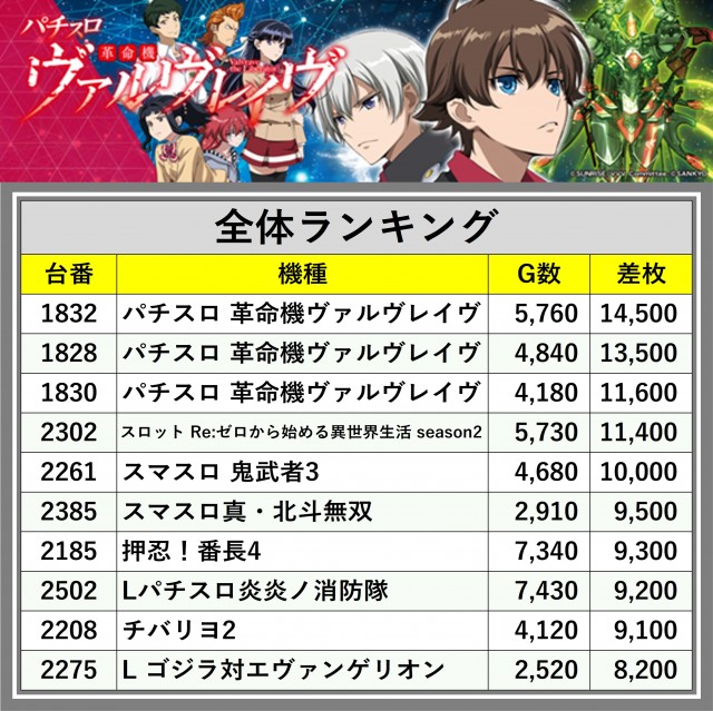 厳選された取材対象機種をはじめ、その他スロット全体から好記録が飛び出した!プレイヤーが楽しんだ1日を下記データにて振り返ってみて欲しい。