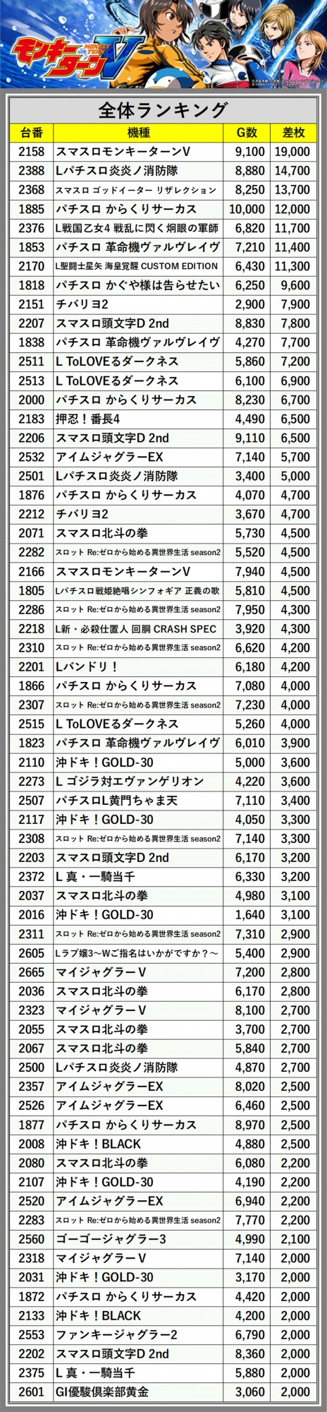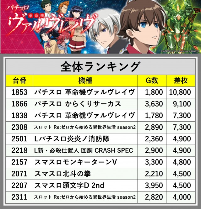 厳選された取材対象機種をはじめ、その他スロット全体から好記録が飛び出した!プレイヤーが楽しんだ1日を下記データにて振り返ってみて欲しい。