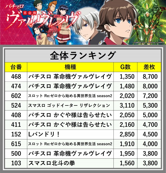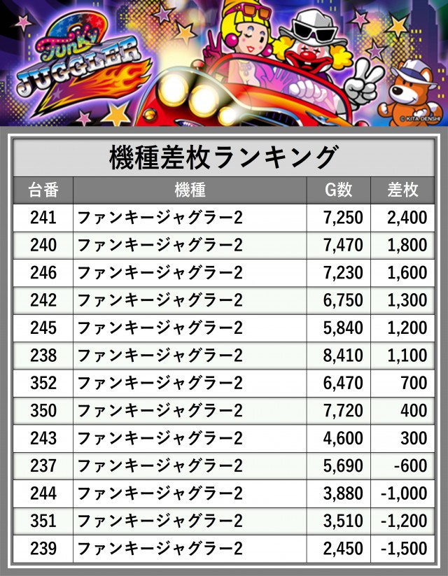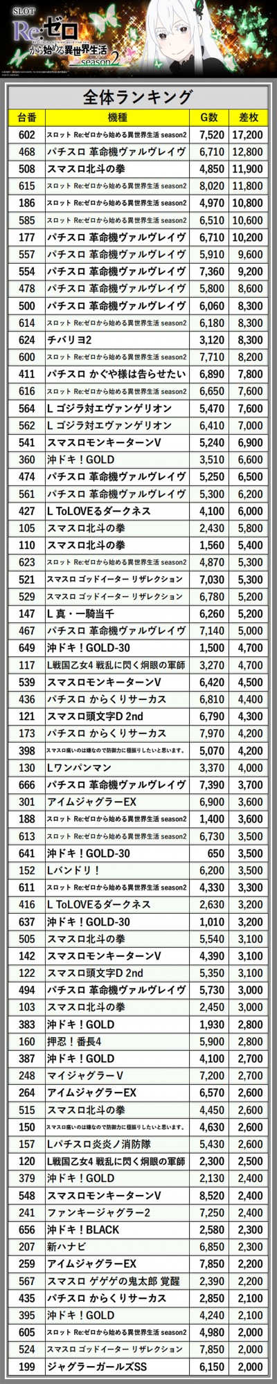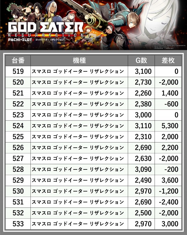 厳選された取材対象機種をはじめ、その他スロット全体から好記録が飛び出した!プレイヤーが楽しんだ1日を下記データにて振り返ってみて欲しい。