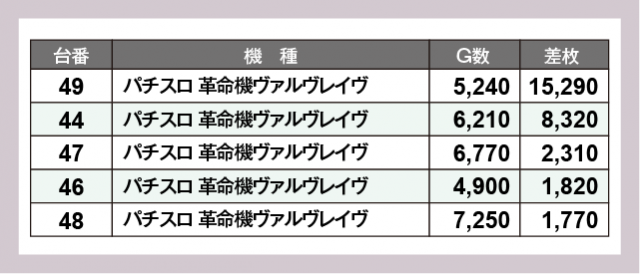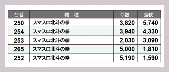 ※差枚数順に掲載しています