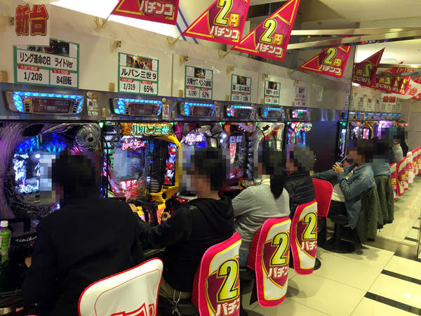 唯一の低貸しコーナーである2円パチンコは和やかな雰囲気の中、多くのプレイヤーの満足げな笑顔を見ることができた。