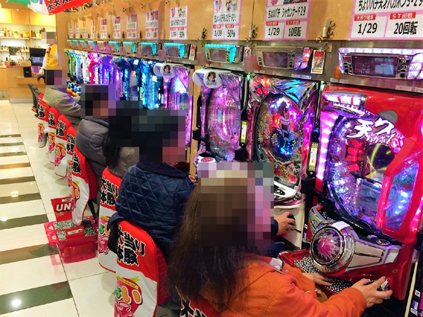 この日の店内は、1000円/48枚パチスロを中心に盛り上がりを見せていた。