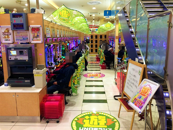 またパチンココーナーでは、スペックやレートが一目で分かるよう、コーナー毎に雰囲気が変えている点が目に付いた。